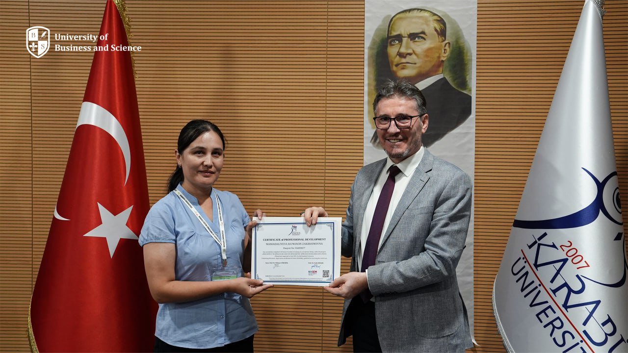 University of Business and Science delegatsiyasi Karabuk universitetida tashkil etilgan malaka oshirish darslarida ishtirok etdi. Ushbu ta’lim safarida ustozlarimiz ilg‘or pedagogik yondashuvlar, zamonaviy ta’lim texnologiyalari hamda o‘quv jarayonlarini boshqarish bo‘yicha muhim bilim va ko‘nikmalarga ega bo‘lishdi.Dastur yakunida UBS professor-o‘qituvchilariga Karabuk universiteti tomonidan sertifikatlar topshirildi. Bu sertifikatlar ularning xalqaro tajribasini e’tirof etib, kelgusida ta’lim sifatini yanada oshirishga xizmat qiladi.Safar davomida xalqaro hamkorlik aloqalari mustahkamlanib, UBS vakillari global akademik maydonda o‘z o‘rinlarini yanada kuchaytirishga muhim qadam qo‘ydi.